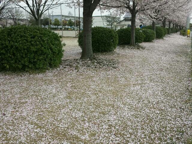 通りかかった公園で見事な桜のカーペットを見ました!!